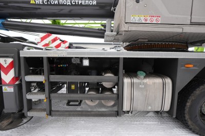 Данный кран представляет собой стреловой кран с возможностью поворота платформы в круговой зоне 360 градусов, с телескопической стрелой и с пропорциональным гидравлическим управлением. Используется шасси автомобильного типа с четырьмя мостами с колесной формулой 8×4, которое изготовлено ZOOMLION. Экологический класс: Euro 5. Кабина водителя – роскошная удобная кабина полной ширины, с широким обзором. Применяется рулевое управление с гидроусилителем, обеспечиваются легкость и ловкость в управлении.